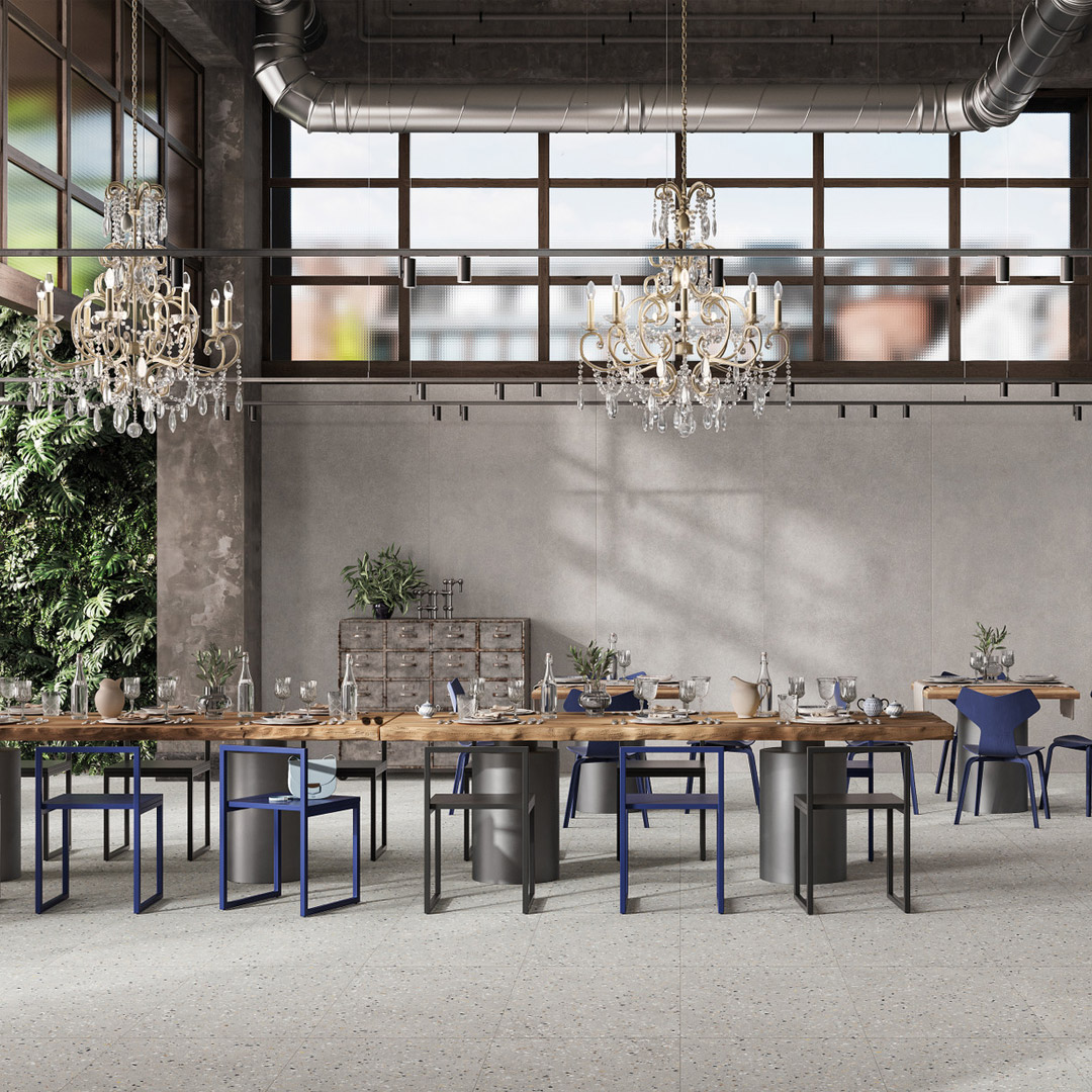 ReConcrete ist eine moderne Interpretation von poliertem Beton, der in Feinsteinzeug umgesetzt wurde, um seine ästhetische Wirkung hervorzuheben, ohne dabei die Funktionalität zu verlieren. Die in die Oberfläche eingearbeiteten Klasten verleihen jeder Platte eine individuelle visuelle Tiefe und machen sie zu einem Ausdruck von Stil und Innovation. Die Kollektion verbindet die kraftvolle Optik von Beton mit der Eleganz von Naturstein und bereichert das Material durch vielfältige Texturen. Sie eignet sich ideal für Designkonzepte – von minimalistischen Innenräumen bis hin zu markanten Außenbereichen.